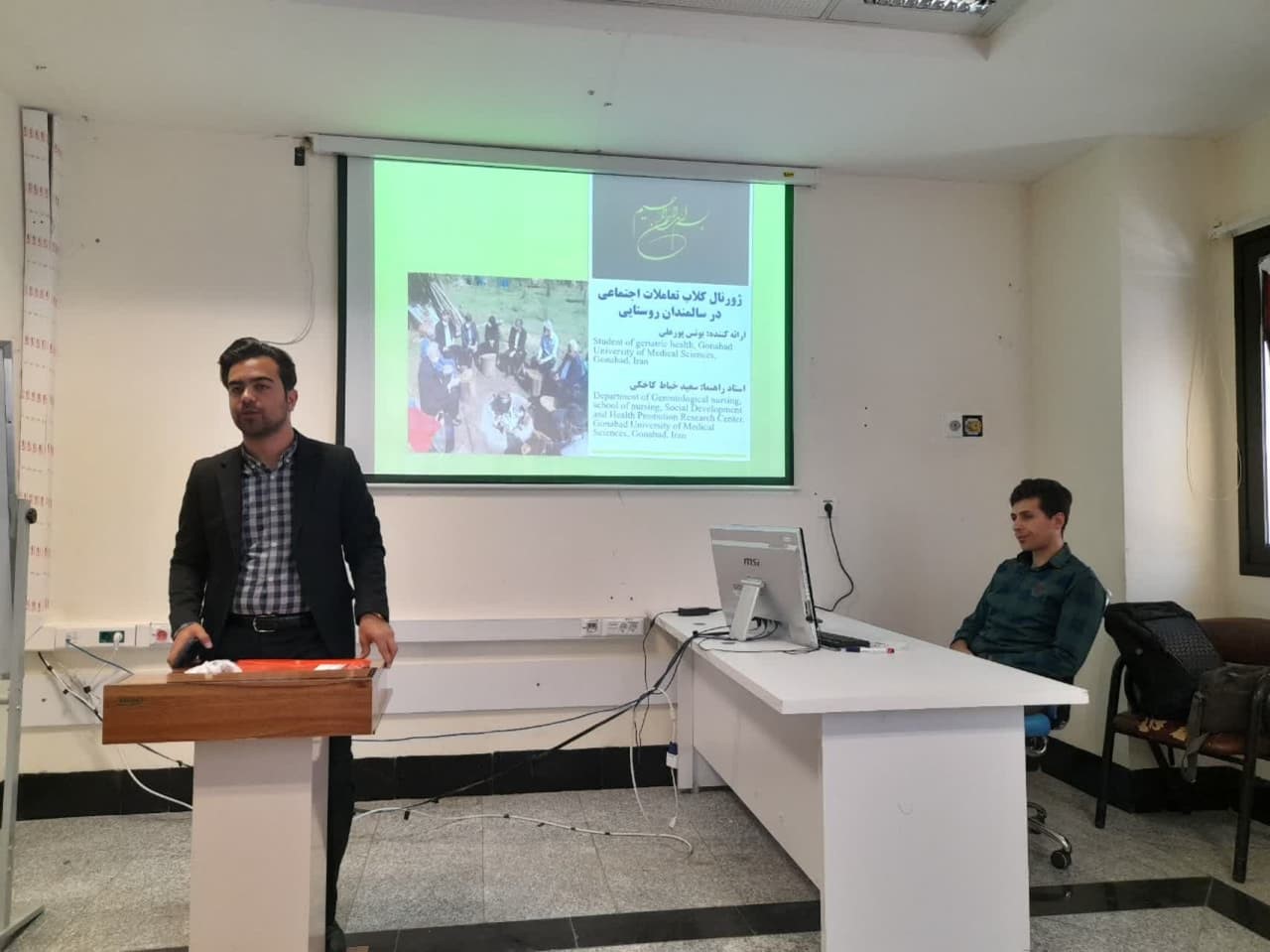 این ژورنال کلاب با عنوان "تعاملات اجتماعی در سالمندان روستایی" با استاد راهنمایی جناب آقای خیاط و دانشجو جناب آقای یونس پورعلی در محل سالن کنفرانس بیمارستان علامه بهلول گنابادی با حضور دانشجویان کارشناسی و کارشناسی ارشد پرستاری برگزار گردید.