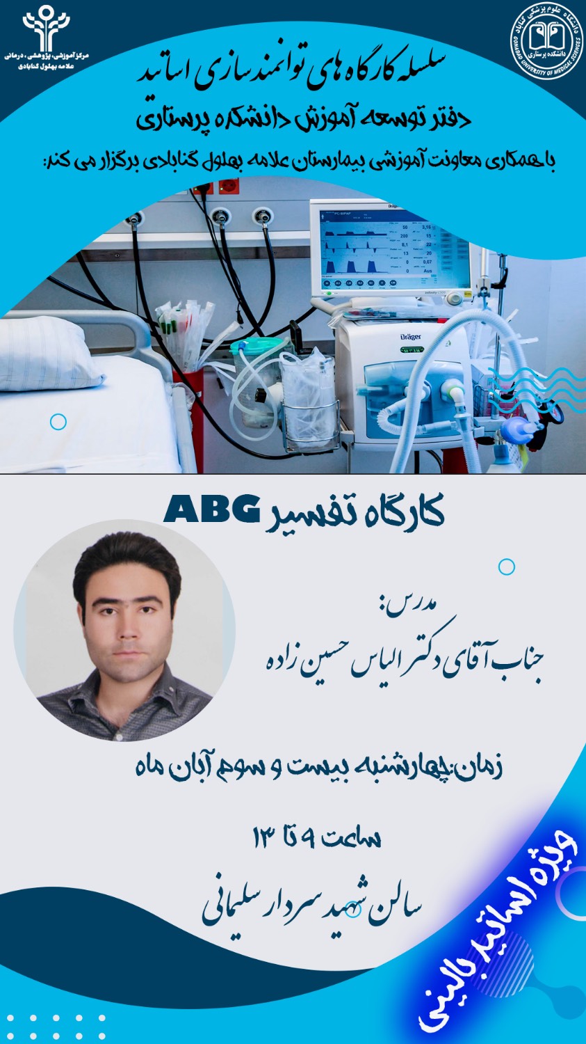 کارگاه تفسیر ABG توسط جناب آقای دکتر الیاس حسین زاده برگزار می شود.