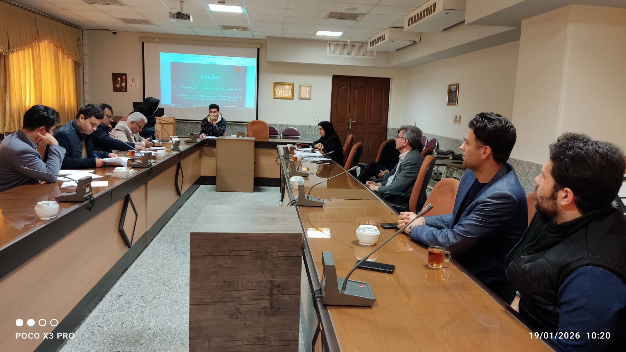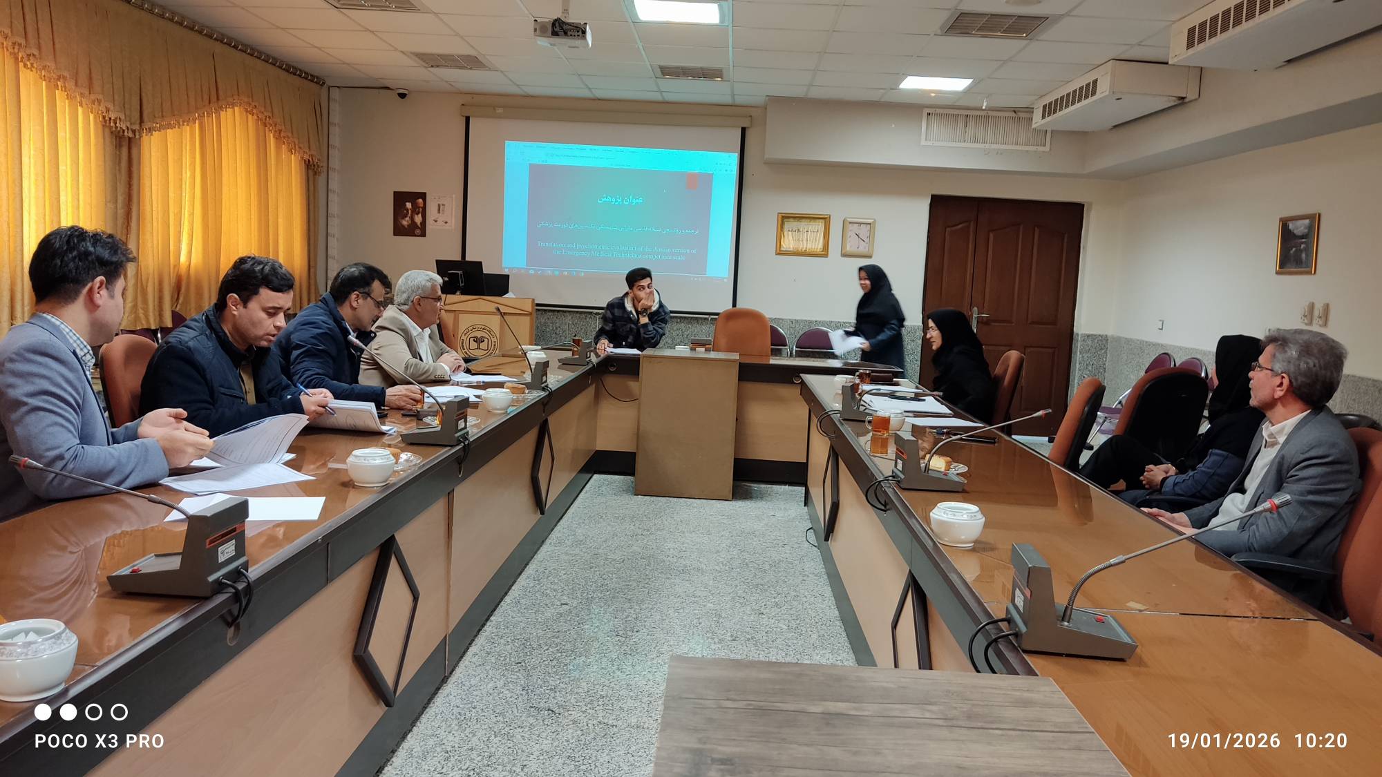 دویست و دهمین جلسه شورای تحصیلات تکمیلی دانشکده مورخ 1404/10/29 در محل سالن رازی با دستور کار دفاع از پروپوزال آقای امیرحسین صدوقیان دانشجوی رشته پرستاری اورژانس با عنوان « ترجمه روانسجي نسخه فارسي مقياس شايستگي تكنسين فوريت هاي پزشكي » به راهنمایی دکتر طاهره بلوچی و استاد مشاور آقای دکتر موسی سجادی و آقای محمد قادری با حضور اکثریت اعضاء و دانشجویان تحصیلات تکمیلی دانشکده برگزار گردید. پروپوزال با نظر مثبت تصویب شد.